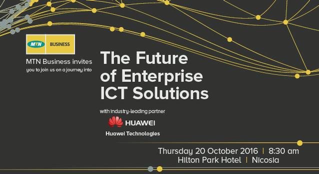 Η ΜΤΝ Business και η Huawei Technologies ενώνουν τις δυνάμεις τους παρέχοντας προϊόντα και υπηρεσίες κορυφαίας ποιότητας στις κυπριακές επιχειρήσεις. Παρουσιάζουν τη συνεργασία τους στο πλαίσιο ενός πρωινού συνεδρίου με θέμα «The Future of Enterprise ICT Solutions» την Πέμπτη 20 Οκτωβρίου στο Ξενοδοχείο Hilton Park. Στην παρουσίαση θα αναδειχθούν οι νέες προτάσεις για προϊόντα πληροφορικής που διατίθενται για επιχειρήσεις.