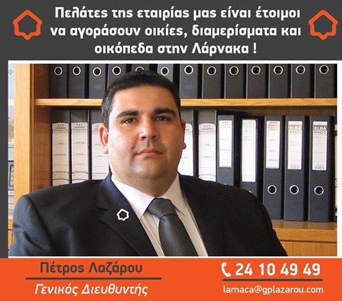 Αν είστε ιδιοκτήτης που θέλει να πουλήσει το ακίνητό του σήμερα, παρακαλώ επικοινωνήστε στο 24-104949 ή στο larnaca@gplazarou.com. Επίσης πελάτης της εταιρίας μας ψάχνει για σπίτι προς ενοικίαση μέχρι 2,500ευρώ