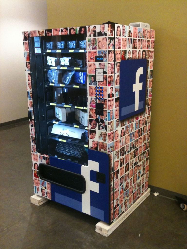 Είναι γνωστό πως το Facebook προσφέρει πολλά προνόμια στους υπαλλήλους του. Αυτά περιλαμβάνουν δωρεάν γεύματα και πρόσβαση σε μέσα μεταφοράς, γυμναστήριο, στεγνοκαθαριστήριο, πάγκους με δωρεάν γλυκά και ένα αύτοματο μηχάνημα που μοιράζει δωρεάν αξεσουάρ ηλεκτρονικών υπολογιστών!