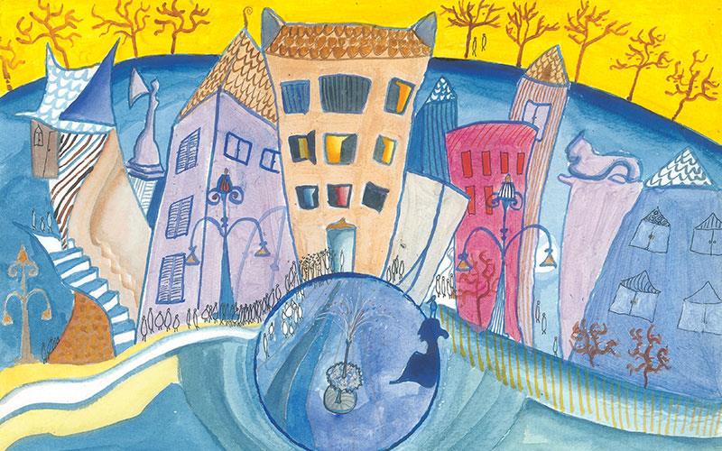 Μέσα από τις εικονογραφήσεις, η Λουίζα Καϊμάκη καταφέρνει να ξυπνήσει τη φαντασία του θεατή και να μεταφέρει με το δικό της μοναδικό τρόπο την ουσία χώρων, στιγμών και σχέσεων.