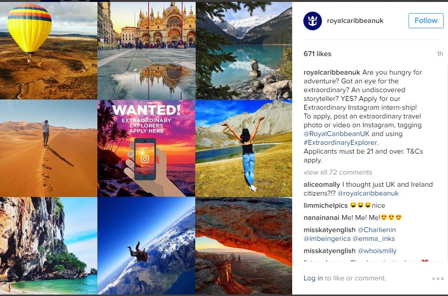 Η Royal Caribbean ανακοίνωσε πως αναζητά νέους και νέες που θα πληρωθούν για να κάνουν ταξίδια με τα κρουαζιερόπλοια της εταιρείας και η μόνη τους επαγγελματική υποχρέωση είναι να ανεβάζουν φωτογραφίες, βίντεο και ιστοριούλες από τις εμπειρίες τους στο Instagram.