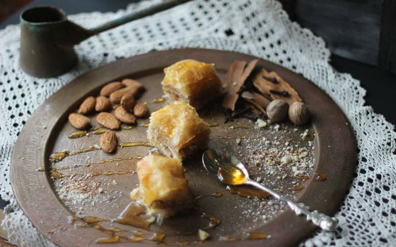 Almond baklavasTraditional cypriot spoon sweetsCanache chocolate cakeKataifi NestSemolina cake