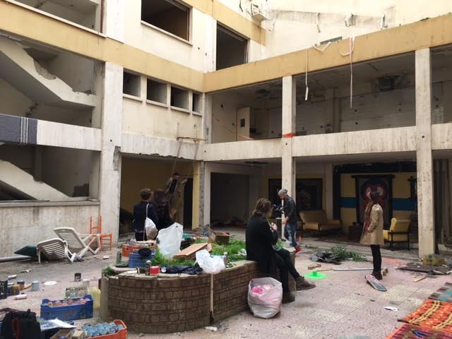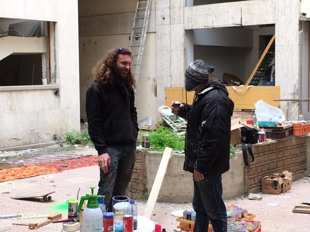 Είμαστε εδώ για να κάνουμε γυρίσματα για το κτίριο με σκοπό να δημιουργήσουμε ένα ντοκιμαντέρ το οποίο θα προβληθεί σε ξένα ΜΜΕ, γιατί όχι και σε τοπικά. Παράλληλα με η υπόλοιπη ομάδα καλλιτεχνών ξεκίνησε να δημιουργεί διάφορα έργα στο χώρο με αντικείμενα που βρήκαμε στο εγκαταλειμμένο κτίριο όπως παπούτσια, πόρτες, καλύμματα φωτιστικών κ.α. Επίσης γίνονται και έργα street art όπως αυτό που απεικονίζει μια φιγούρα της πόλης , τη γιαγιά με τα 2 παπαγαλάκια.