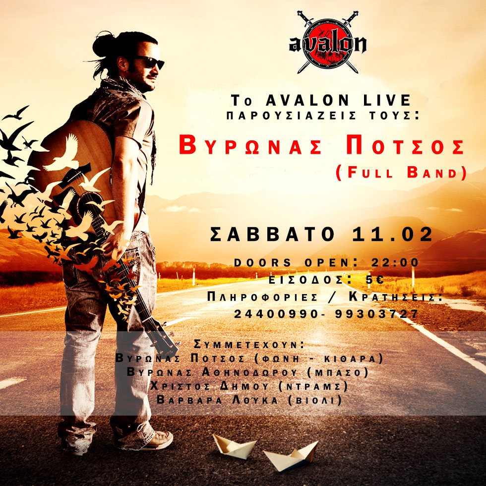 Ο Βύρωνας Ποτσος σε Full Band μαζί μας ξανά στο Avalon. Εκτελέσεις δικών του κομματιών καθώς και…Διαβάστε περισσοτερα