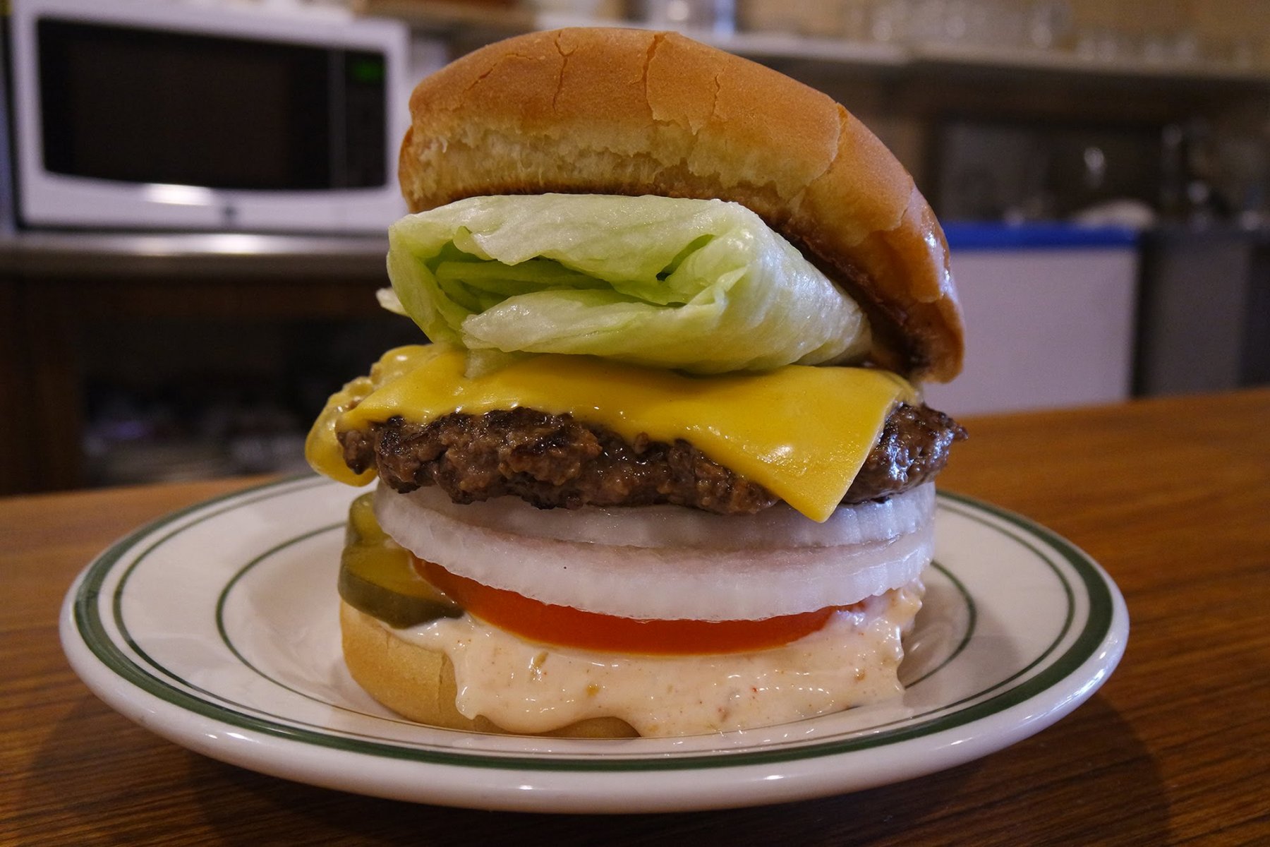 Σερβίρει hot dogs και κρύα μπύρα αλλά είναι πιο γνωστό για τα τεράστια σπιτικά burgers, ειδικά για το barbecue bacon cheesburger που φαίνεται λαχταριστό.