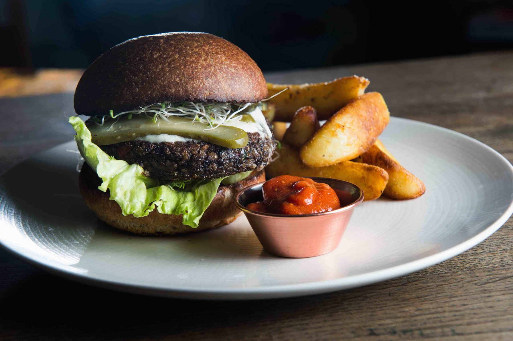 Ποτέ δεν ξεχνάμε τους vegetarian της παρέας! Το Farmacy σερβίρει υποκατάστατα του burger φτιαγμένα από μανιτάρια, μαύρα φασόλια και κεχρί ενώ συνοδεύεται από αβοκάντο, πίκλες, ντομάτα και goji ketchup που έχουν ένα εξωφρενικά νόστιμο αποτέλεσμα. Μπορείς να το παραγγείλεις και με ψωμάκια χωρίς γλουτένη.