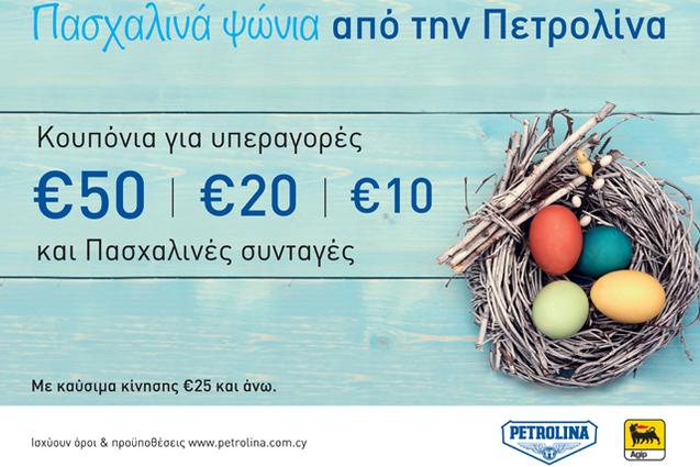 Με τη νέα πασχαλινή προωθητική ενέργεια της Πετρολίνα, οι ενδιαφερόμενοι έχουν την ευκαιρία να αποκτήσουν κουπόνια για ψώνια από επιλεγμένες υπεραγορές ή δωρεάν συνταγές μαγειρικής από την Αθηνά Λοϊζίδη.