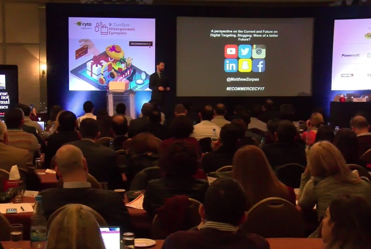 Τεράστιο ενδιαφέρον προσέλκυσε η παρουσίαση του Matthew Zorpas, ιδρυτή του thegentlemanblogger.com, ο οποίος μίλησε και παρουσίασε τη θεματική “A Perspective on the Current and Future of Digital Targeting. Blogging: Wave of a better Future?”.