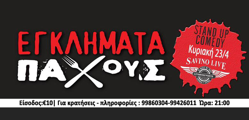 Stand up comedy with Louis Patsalides Sunday 23rd April Entrance €10 Doors Open at 21:00 Info 99860304 /…Διαβάστε περισσοτερα