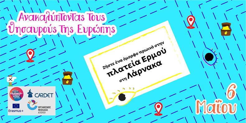 Ελάτε μαζί μας για ένα ευχάριστο πρωινό με κυνήγι θησαυρού και πλούσια δώρα, στο κέντρο της Λάρνακας. Το κυνήγι θησαυρού διοργανώνεται από τον οργανισμό CARDET, στα πλάισια της Ευρωπαϊκής Εβδομάδας Νέων η οποία διοργανώνεται από τον Οργανισμός Νεολαίας Κύπρου / Youth Board of Cyprus (ΟΝΕΚ) και το Erasmus+ Youth Cyprus.