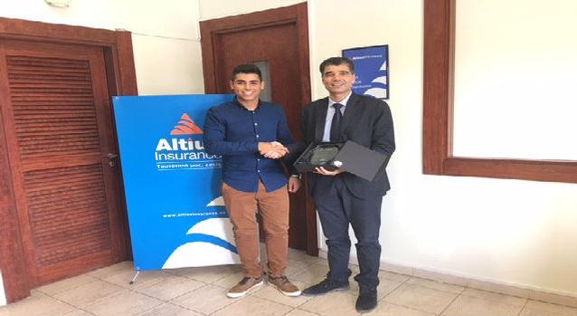 Η τελετή πραγματοποιήθηκε στα γραφεία της Altius Insurance στην Πάφο, όπου του απονεμήθηκε τιμητική πλακέτα και συμβολικό ποσό από τον Διευθυντή Πωλήσεων & Μάρκετινγκ κ. Πόλη Προκοπίου.