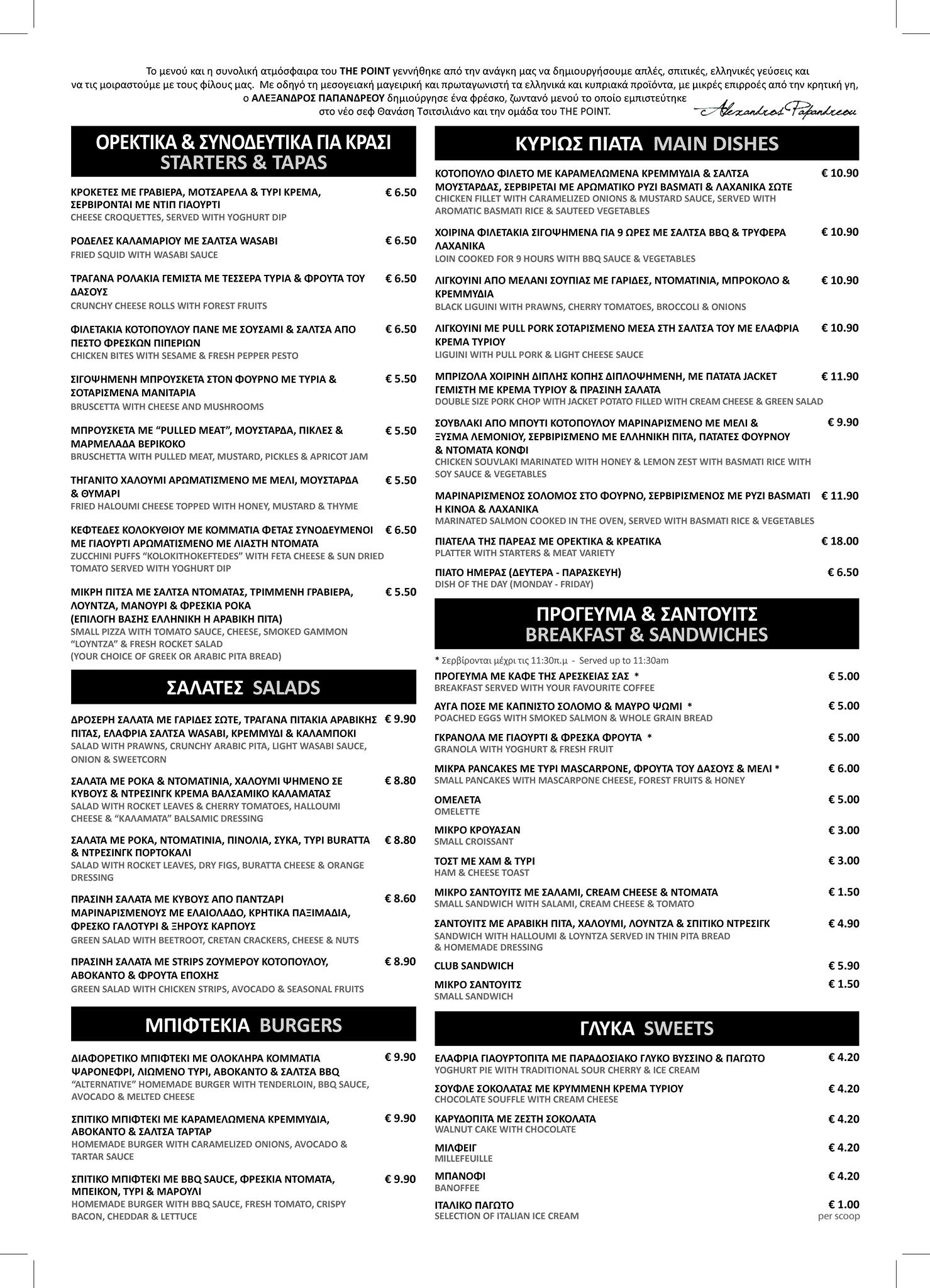 Το νέο μενού είναι διαθέσιμο από σήμερα στο αγαπημένο στο The Point και μπορείτε να το δείτε πιο κάτω για να πάρετε μια γεύση.