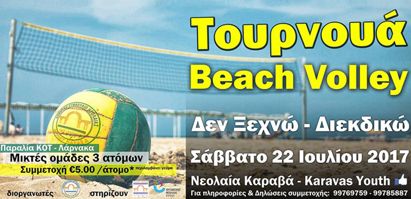 Summer Volley Beach Tournament Σάββατο 22 Ιουλίου 2017, στις 10:00, Παραλία Φοινικούδων Λάρνακα English follows – Greek…Διαβάστε περισσοτερα