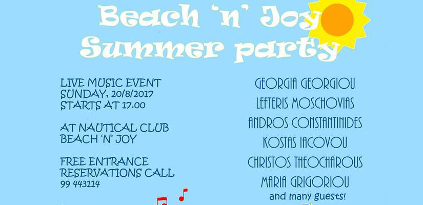 Ημερομηνίες: 20/08/2017 18:00 pm – 21/08/2017 Τοποθεσία Nautical club Beach ‘N Joy