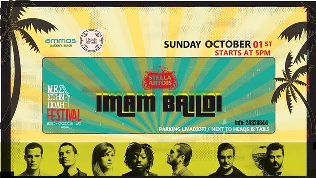 Τη Κυριακή 1 Οκτωβρίου οι Imam Baildi θα βρίσκονται στη Λάρνακα για μια μοναδική μουσική εμφάνιση με τραγούδια από το νέο τους album. Το συγκρότημα θα δώσει την εμφάνιση του στο Πάρκινγκ Λειβαδιώτη δίπλα στο “Head n Tails” και ώρα 17:00 μ.μ.