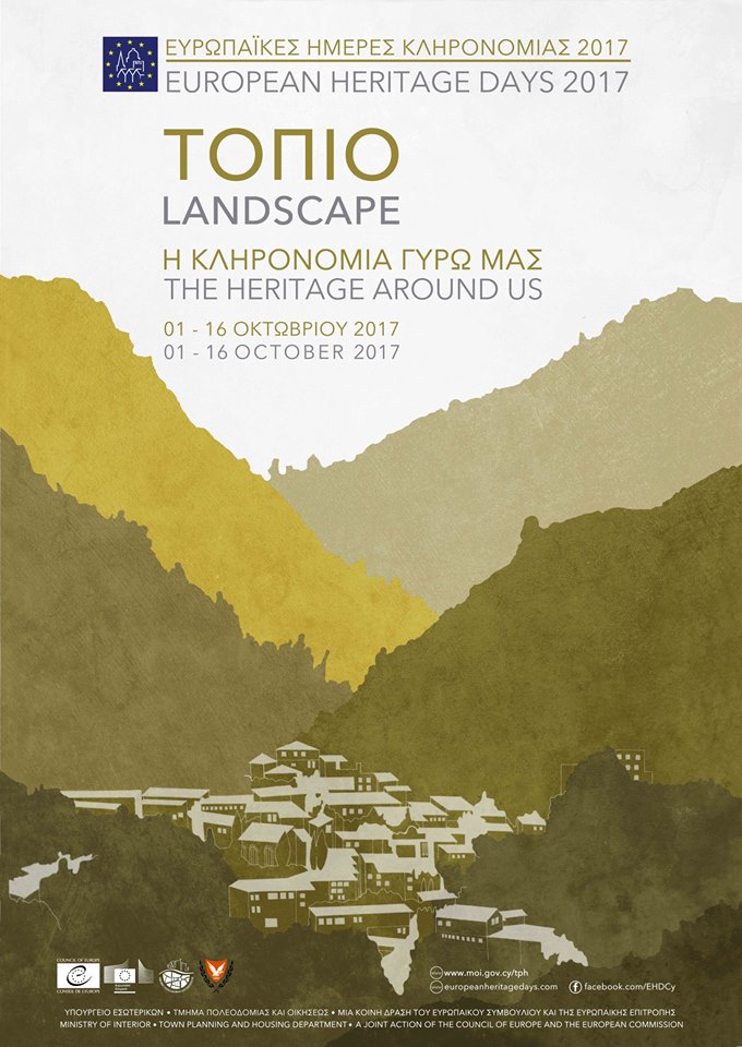 Φέτος, η Κύπρος συμμετέχει στις Ευρωπαϊκές Ημέρες Κληρονομιάς 2017 με το θέμα “Τοπίο: Η Πολιτιστική Κληρονομιά γύρω μας”. Σύμφωνα με τον ορισμό που δίνει η “Ευρωπαϊκή Σύμβαση του τοπίου” (Ε.Ε. 2000), ο ορισμός του Τοπίου εκφράζει ”μια περιοχή όπως γίνεται αντιληπτή από ανθρώπους, της οποίας ο χαρακτήρας είναι το αποτέλεσμα της δράσης και αλληλεπίδρασης των φυσικών και/ή ανθρώπινων παραγόντων”. Αποτελεί ένα πολυδιάστατο στοιχείο, με αντιληπτική, πολιτισμική, οικολογική και κοινωνική διάσταση.