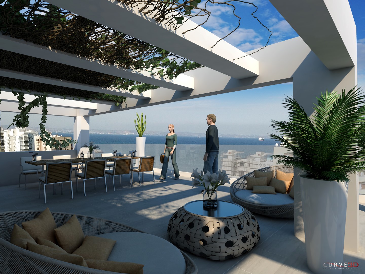 Επιπρόσθετα, το οροφοδιαμέρισμα του πέμπτου ορόφου θα διαθέτει ιδιωτικό και πολυτελή ρετιρέ στον έκτο όροφο, με νοτιοανατολικό μαγικό πανοραμικό προσανατολισμό θέα την πόλη της Λάρνακας.