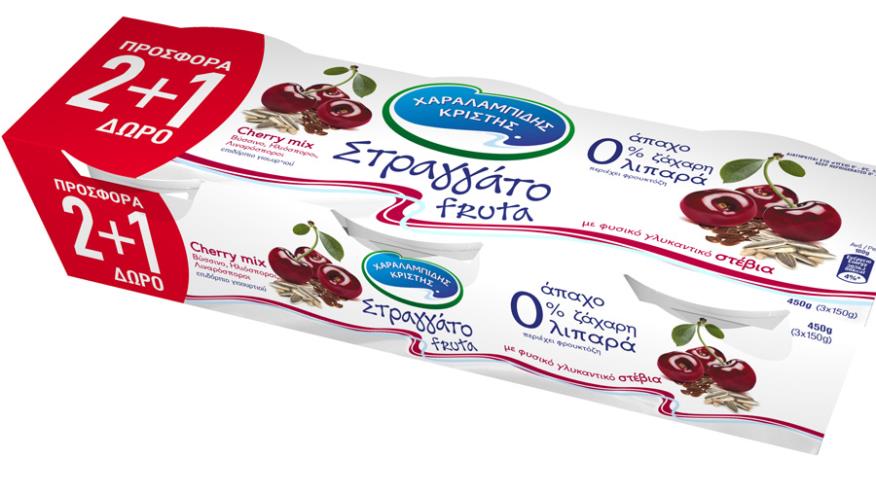 Το καινούργιο προϊόν, Στραγγάτο Fruta Cherry Mix, κυκλοφορεί, σε ατομική συσκευασία των 150γρ. καθώς και σε τριπλή, 3 x 150γρ.Το Στραγγάτο Fruta, το πρώτο κυπριακό γιαούρτι φρούτου με πρώτη ύλη το γάλα Χαραλαμπίδης Κρίστης, το πιο θρεπτικό και γευστικό γάλα κυπριακής παραγωγής, είναι διαθέσιμο σε 6 μοναδικές γεύσεις: Στραγγάτο Fruta Φράουλα, Στραγγάτο Fruta Ροδάκινο, Στραγγάτο Fruta Superfood Berries, Στραγγάτο Fruta Detox Mix, Στραγγάτο Fruta Exotic Mix και τώρα Στραγγάτο Fruta Cherry Mix.