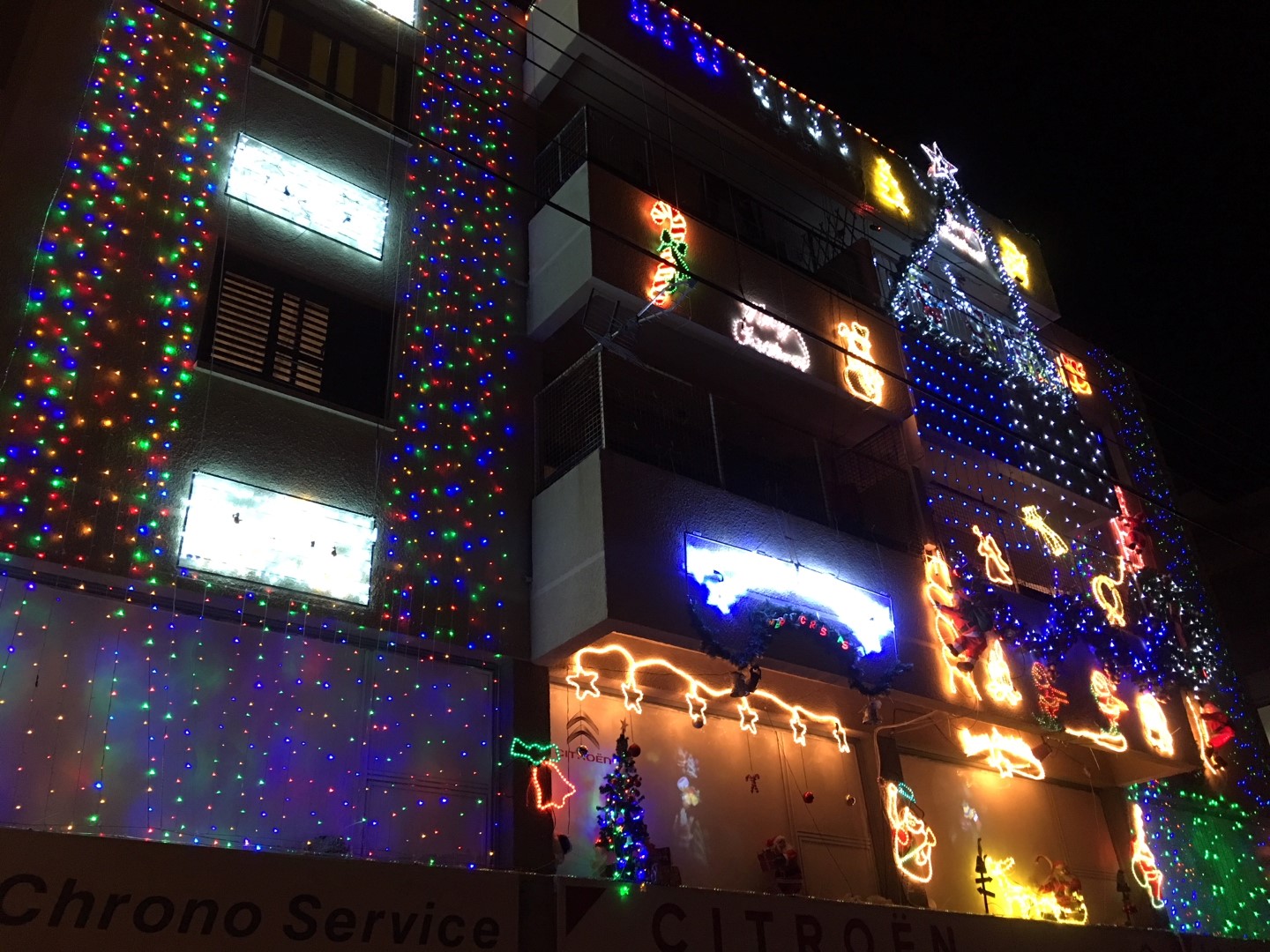 Το θέαμα που προσφέρει απλά εντυπωσιακό, καθώς ο διάκοσμος και τα φωτεινά του στολίδια δεν μένουν απαρατήρητα για όποιον τύχει να περάσει από εκεί. Η εικόνα όπως παρουσιάζεται στο σύνολο της δίνει ξεκάθαρα πως η Χριστουγεννιάτικη ατμόσφαιρα είναι αισθητή στη Λάρνακα και φυσικά στη μικρή γειτονιά που βρίσκεται η πολυκατοικία.