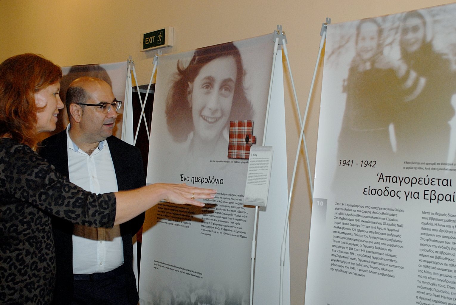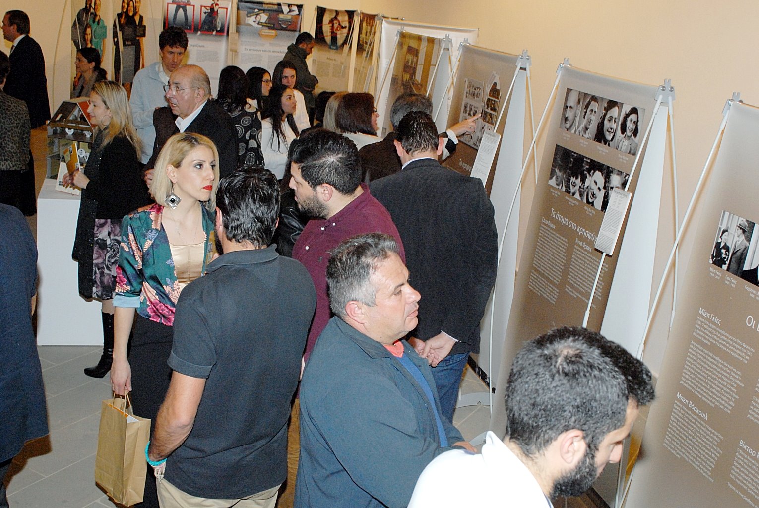 Στιγμιότυπο από τα εγκαίνια της έκθεσης «Αφήστε με να είμαι ο εαυτός μου – Η Ιστορία της Ζωής της Άννας Φρανκ», που πραγματοποιήθηκαν την Πέμπτη 15 Μαρτίου 2018, στη Δημοτική Πινακοθήκη Λάρνακας.