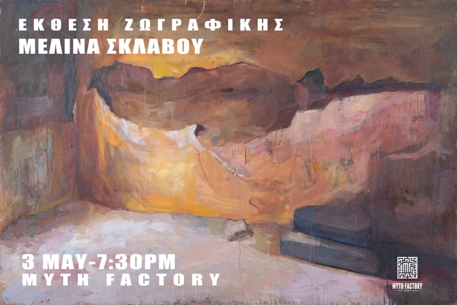 Την πρώτη της προσωπική έκθεση εγκαινιάζει η Μελίνα Σκλάβου. Η εικαστικός, παρουσιάζει για πρώτη φορά τα έργα της, την Πέμπτη 3 Μαΐου 2018 στο Myth Factory στη Λάρνακα.