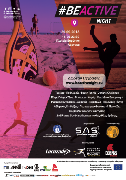 Αναλυτικά το #BeActive Night το οποίο συνδιοργανώνεται με την εταιρεία SAS Sports συμπεριλαμβάνει: