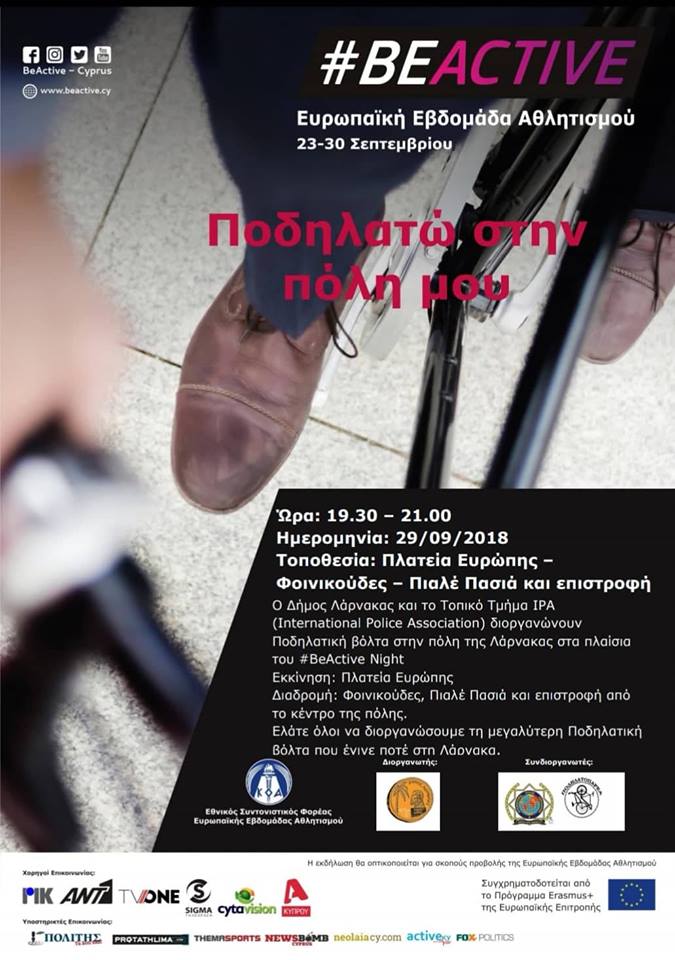City of Larnaca > Blog > Ατζέντα > Events > Έρχεται η ετησία Ευρωπαϊκή Εβδομάδα Αθλητισμού #BeActive στην πόλη μας – Δείτε αναλυτικά το πρόγραμμα