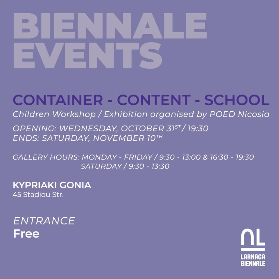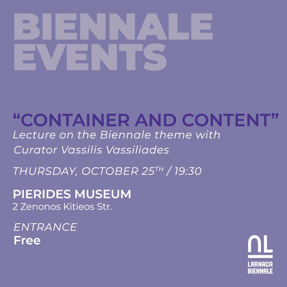 Ως θεματολογία έχει επιλεγεί ο τίτλος ’Δοχείο  Περιεχόμενο’’ σύμφωνα με την εισήγηση του εικαστικού Βασίλη Βασιλειάδη που είναι και ο επιμελητή της Biennale Larnaca.
