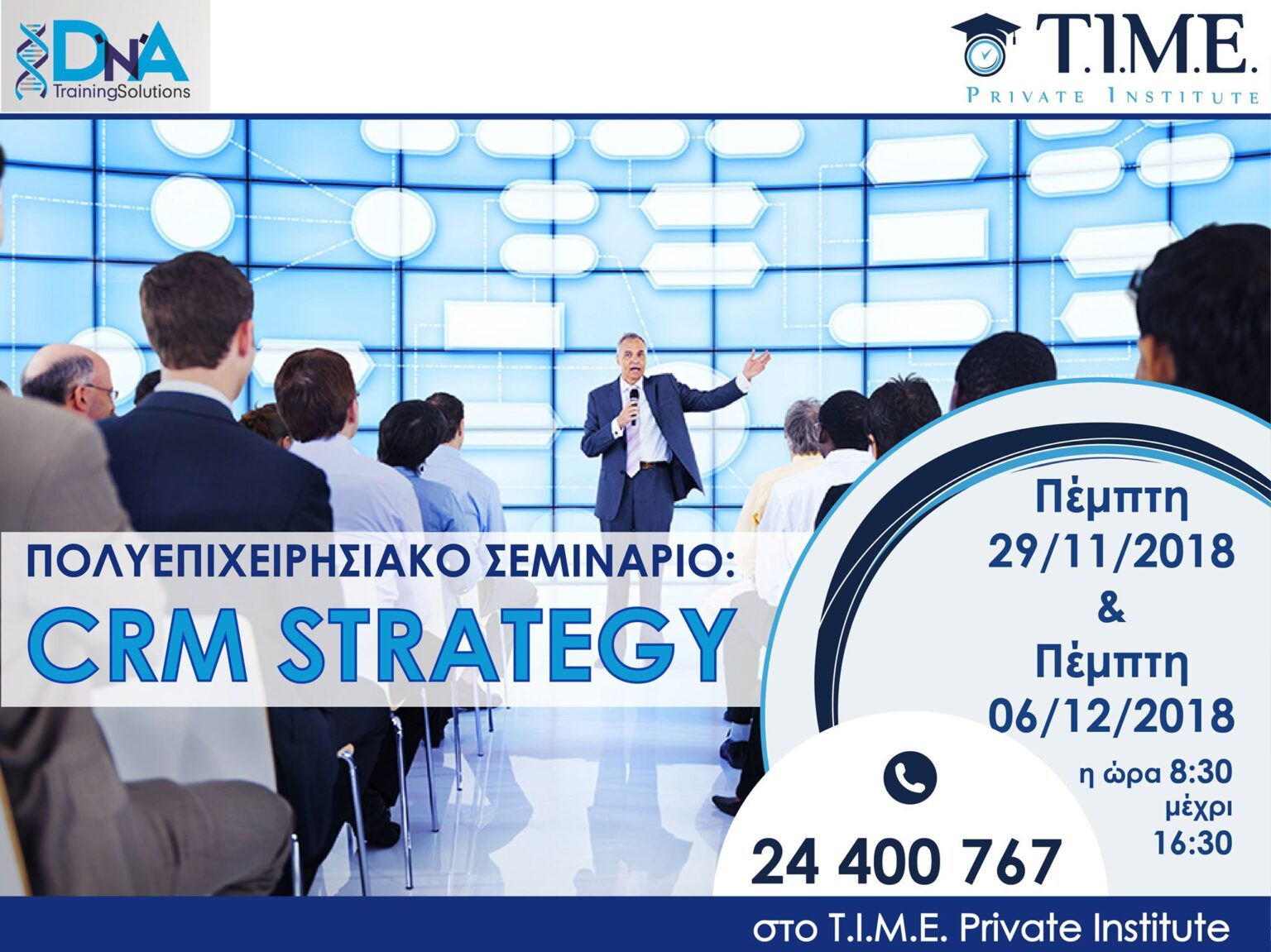 29 ΝΟΕΜΒΡΙΟΥ & 6 ΔΕΚΕΜΒΡΙΟΥ ΣΕΜΙΝΑΡΙΟ: CRM STRATEGY – ΔΙΑΧΕΙΡΙΣΗ ΠΕΛΑΤΕΙΑΚΩΝ ΣΧΕΣΕΩΝ 8:30 ΠΜ – 4:30 ΜΜ Time Private Institute, Ελευθερίας 71, Λάρνακα , 24 400767 ΛΕΠΤΟΜΕΡΕΙΕΣ ΣΕΜΙΝΑΡΙΟΥ