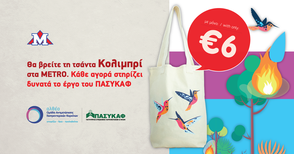 Οι υπεραγορές METRO εδώ και χρόνια δείχνουν εμπράκτως τη στήριξη τους προς την κοινωνία. Με σχετική ανακοίνωση τους καλούν τους πελάτες των υπεραγορών σε Στρόβολο και Λάρνακα να βρούν τη δική σας τσάντα Κολιμπρί και μέσα από την κάθε αγορά στηρίζει δυνατά το έργο του ΠΑΣΥΚΑΦ.