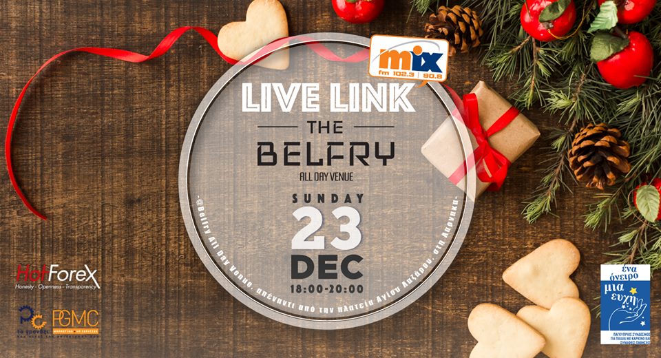 Το The Belfry Larnaca σε συνεργασία με την PGMC – Marketing Services και την HotForex EU, στα πλαίσια της κοινωνικής, εταιρικής τους ευθύνης, διοργανώνουν Pre-Christmas LIVE-LINK με τον Mix Fm Radio την Κυριακή, 23/12, από τις 18:00 ως τις 20:00.