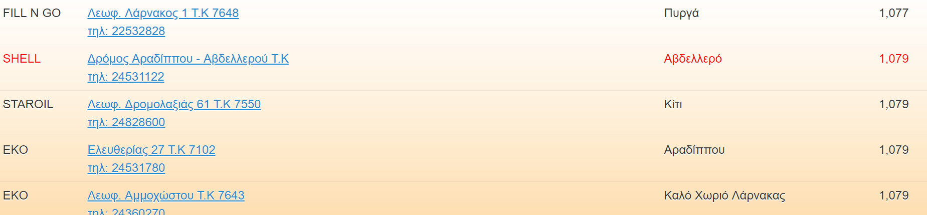 Δείτε πιο κάτω τα φθηνότερα πρατήρια σην Λάρνακα: