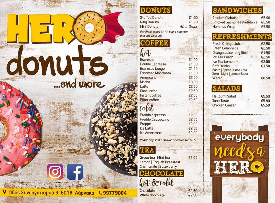 Το City of Larnaka επισκέφτηκε το Hero Donuts and More, ένα μικρό εργαστήρι ζαχαροπλαστικής στο κέντρο της Λάρνακας. Το Hero Donuts and More γλυκαίνει καθημερινά την πόλη μας με μια μεγάλη ποικιλία από λαχταριστά ντόνατς τα οποία παρασκευάζονται καθημερινά από το νεαρό ιδιοκτήτη του, τον Αντώνη Χριστοδούλου.  Επίσης, προσφέρει κρύο και ζεστό καφέ άλλα και δροσερές σαλάτες και σάντουιτς.
