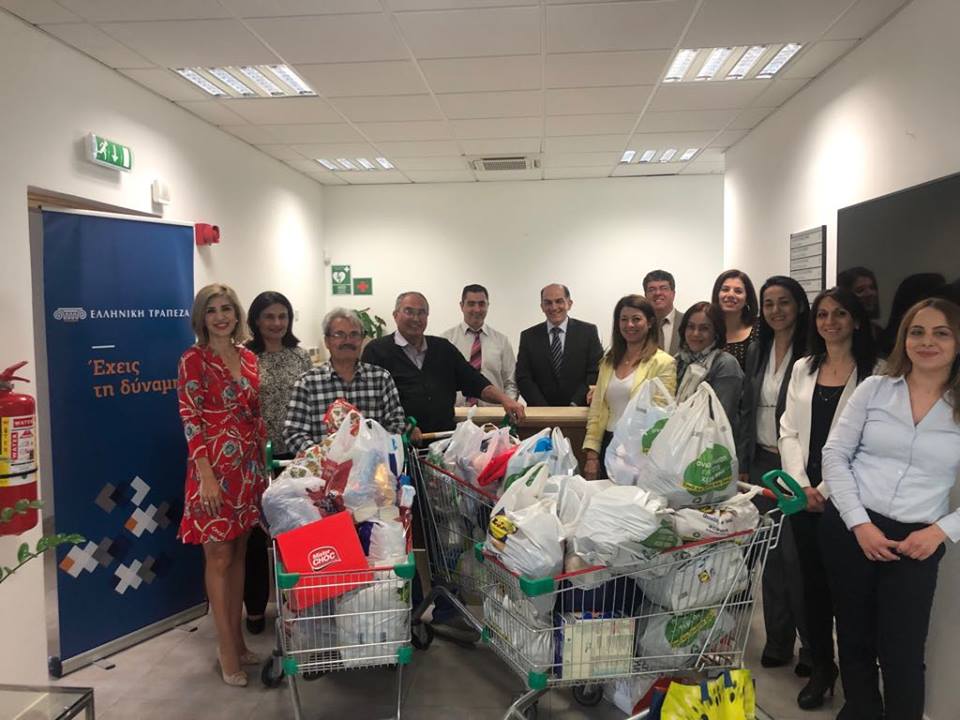 Παράδοση τροφίμων και ειδών πρώτης ανάγκης από την Ελληνική Τράπεζα – παράρτημα Λάρνακας, για στήριξη του Κοινωνικού Παντοπωλείου Δήμου Λάρνακας. Η παράδοση πραγματοποιήθηκε στα Γραφεία της Ελληνικής Τράπεζας.