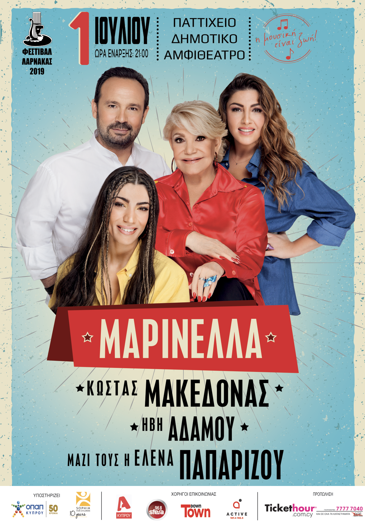 Τα λόγια είναι περιττά όταν πρόκειται για τη μεγάλη κυρία του ελληνικού τραγουδιού, τη ΜΑΡΙΝΕΛΛΑ. Η καταξιωμένη ερμηνεύτρια με τη σαρωτική παρουσία της, είναι ένα σύμβολο δύναμης, θέλησης και δημιουργίας και αποτελεί έναν ζωντανό θρύλο για τις νεότερες γενιές.