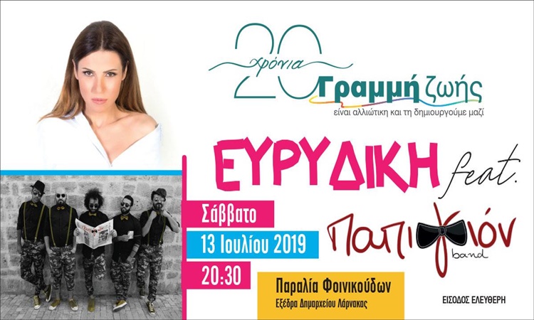 20 χρόνια «Γραμμή ζωής» με Ευρυδίκη feat. Παπιγιόν Band, το Σάββατο 13 Ιουλίου παραλία των Φοινικούδων, στις 20:30.
