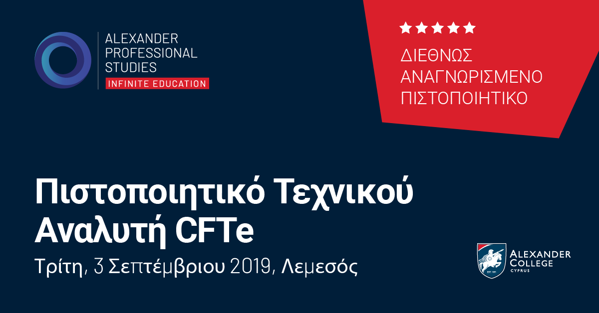 Πιστοποιητικό Τεχνικού Αναλυτή CFTe από το Alexander College