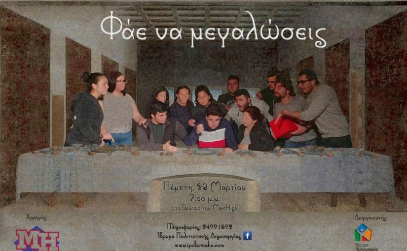Το χορόδραμα θα παρουσιάσει ο πολιτιστικός όμιλος “Συναπάντυμα Αγάπης” και τελείται υπο την αιγίδα του Υπουργού Παιδείας και Πολιτισμού.