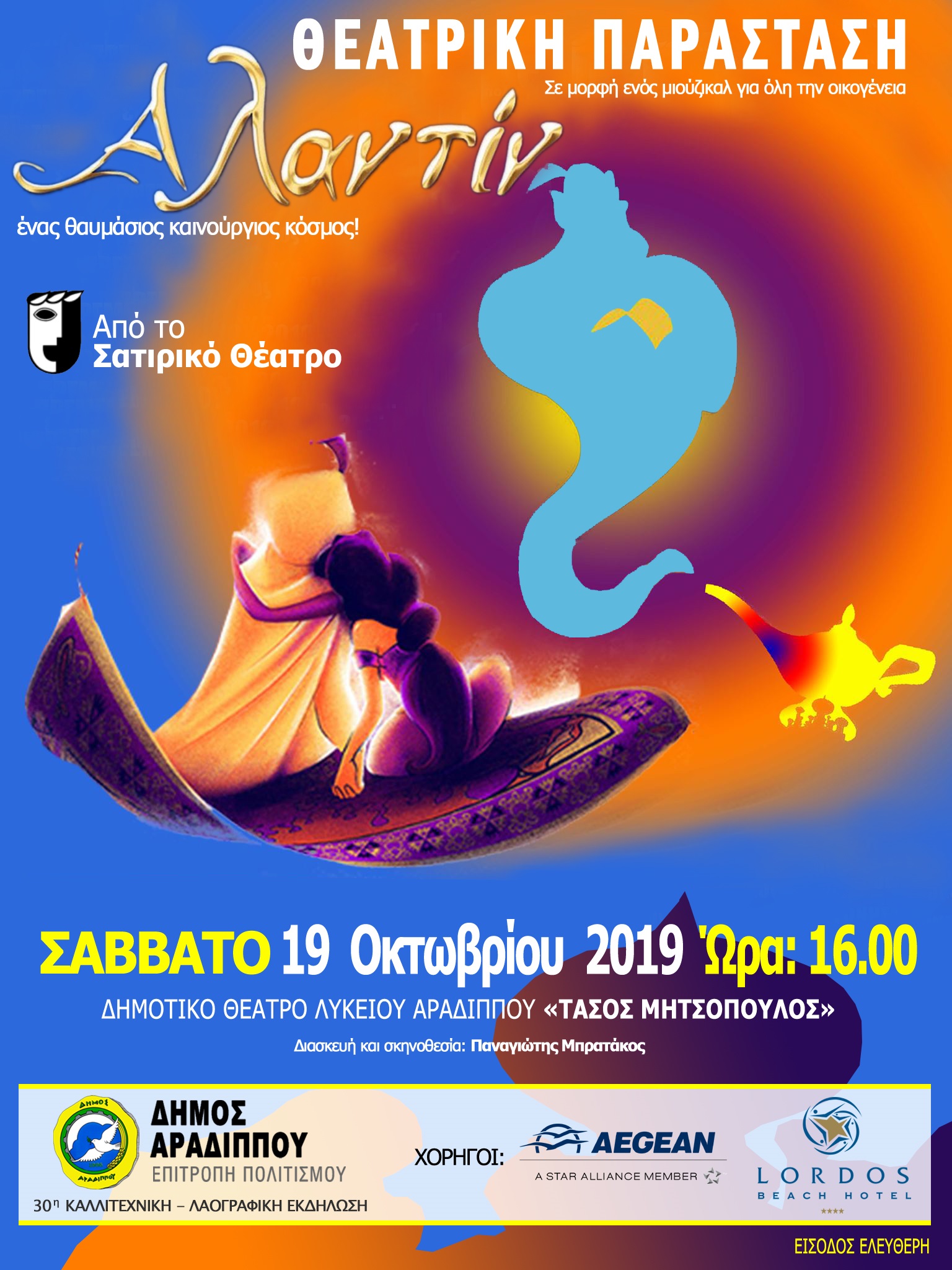 City of Larnaca > Blog > Going Out > Θέατρο > Η Παιδική Σκηνή του Σατιρικού Θεάτρου παρουσιάζει αύριο το υπέροχο παραμύθι «Αλαντίν στο Δημοτικό Θέατρο του Λυκείου Αραδίππου «Τάσος Μητσόπουλος»