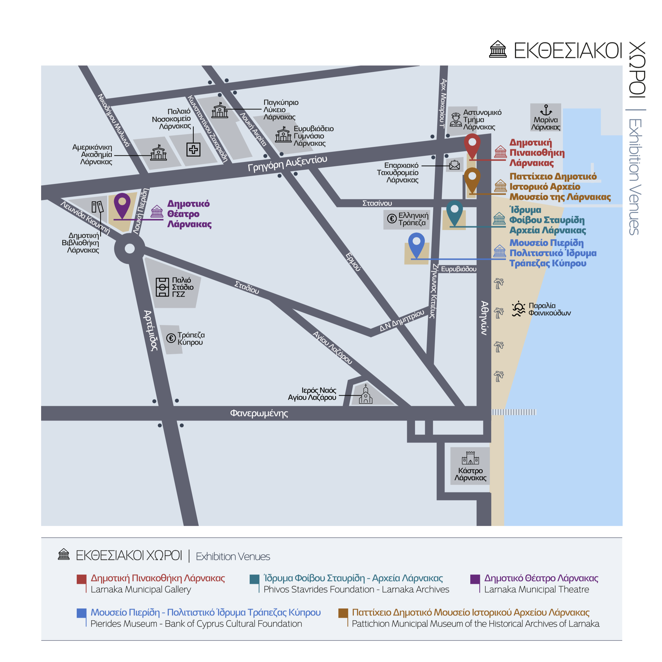 Τα εγκαίνια θα τελέσει ο Δήμαρχος Λάρνακας κ. Ανδρέας Βύρας την Παρασκευή, 15 Νοεμβρίου 2019 στις 8:00 μ.μ. στη Δημοτική Πινακοθήκη Λάρνακας. Παράλληλα θα εκτίθενται έργα του καλλιτέχνη στο Παττίχειο Δημοτικό Μουσείο Ιστορικού Αρχείου Λάρνακας, στο Δημοτικό Θέατρο Λάρνακας, στο Ίδρυμα «Φοίβος Σταυρίδης – Αρχεία Λάρνακας και στο Μουσείο Πιερίδη  – Πολιτιστικό Ίδρυμα Τράπεζας Κύπρου.