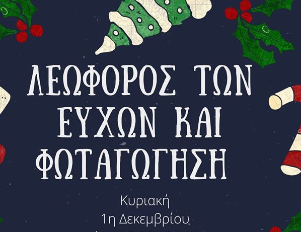 Η λεωφόρος των ευχών θα ανοίξει τις πόρτες της την 1η Δεκεμβρίου ώρα 15:00 με πλούσιες δράσεις. Μουσική, τραγούδια, χοροί, ανάγνωση παραμυθιού, photobooth, Άγιος Βασίλης και πολλές άλλες δράσεις θα δημιουργήσουν μια εορταστική ατμόσφαιρα. Στις 18:00 θα πραγματοποιηθεί η φωταγώγηση.