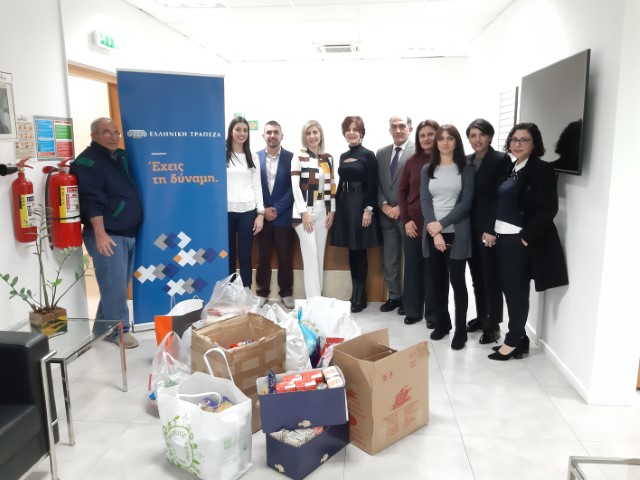 Τα τρόφιμα προσφέρθηκαν από τους υπαλλήλους της Ελληνικής Τράπεζας Λάρνακας – Αμμοχώστου και εκ μέρους της Ελληνικής Τράπεζας παρέδωσε η κα ‘Εμιλυ Παστελίδου, Διευθύντρια Δικτύου Καταστημάτων, Επαρχίας Λάρνακας – Αμμοχώστου.