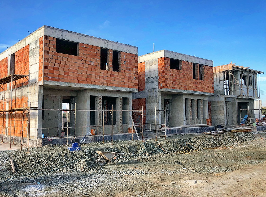 Συγκεκριμένα στις κατοικίες τυπου Γ και Β έχει αποπερατωθεί ο σκελετός από οπλισμένο σκυρόδεμα και τώρα βρίσκονται στη φάση των τοιχοποιιών, σοβατισμάτων και τοποθέτησης ηλεκτρολογικών κουτιών και σωλήνων. Οι κατοικίες τύπου Α είναι στο στάδιο της θεμελίωσης.