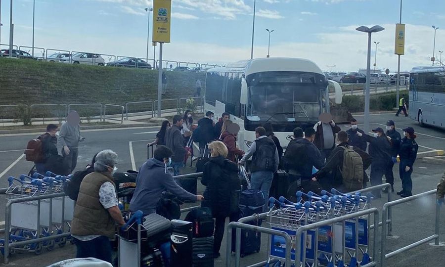 Όπως πληροφορούμαστε πτήση από την Αθήνα έφτασε πριν λίγο στην Κύπρο με τους επιβάτες να επιβιβάζονται σε λεωφορεία ώστε να μεταφερθούν στο ξενοδοχείο Aldiana στον Μαζωτο για να απομονωθούν για διάρκεια 14 ημερών. Η διαδικασία κύλησε ομαλά ωστόσο στον χώρο βρίσκονται μέλη της αστυνομίας και του στρατού τα οποία ελέγχουν την κατάσταση και στην συνέχεια θα συνοδεύσουν τους επιβάτες στο ξενοδοχείο.