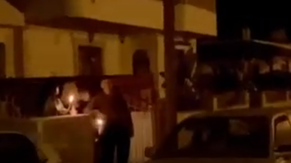 Κοντά στα μεσάνυχτα, 70 περίπου άτομα βγήκαν στις αυλές τους κρατώντας το Άγιο Φως. Τοποθετώντας εξωτερικά μεγάφωνα και μικρόφωνα, έψαλλαν όλοι μαζί το «Χριστός Ανέστη». Ο καθένας από την αυλή του σπιτιού του και ταυτόχρονα όλοι μαζί, δείπνησαν σαν μια οικογένεια, νιώθοντας δίπλα τους, τους δικούς τους ανθρώπους και αναπληρώνοντας τις κενές θέσεις εκείνων που έλειπαν.