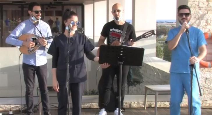 Θέλοντας να τονώσουν το ηθικό των ασθενών που διαμένουν εκεί αλλά και να τους ενθαρρύνουν σε αυτή τη δύσκολη δοκιμασία που περνούν μακρυά από τους οικείους τους, γιατροί και νοσηλευτές τραγούδησαν στήνοντας γιορτή στον υπαίθριο χώρο του ξενοδοχείου.
