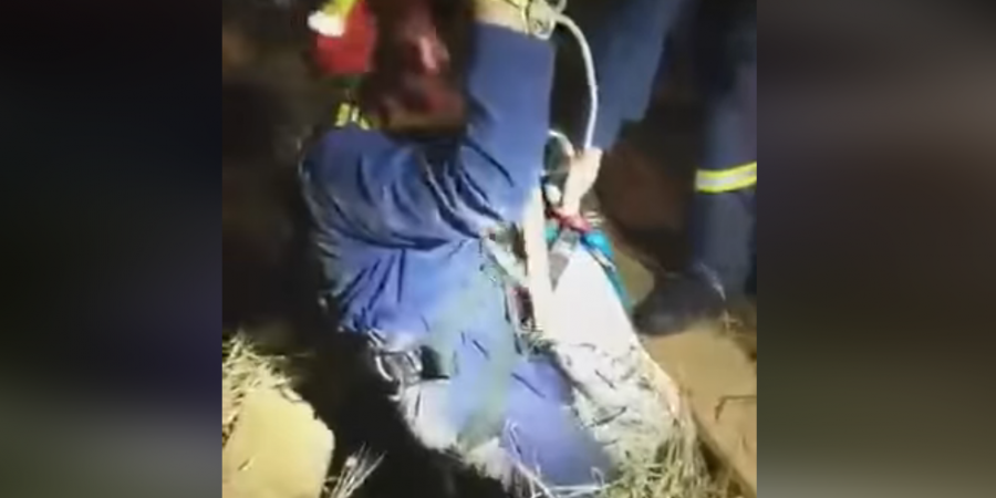Πρόκειται για τη διάσωση ενός σκύλου ο οποίος έπεσε σε πηγάδι.