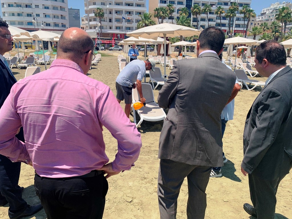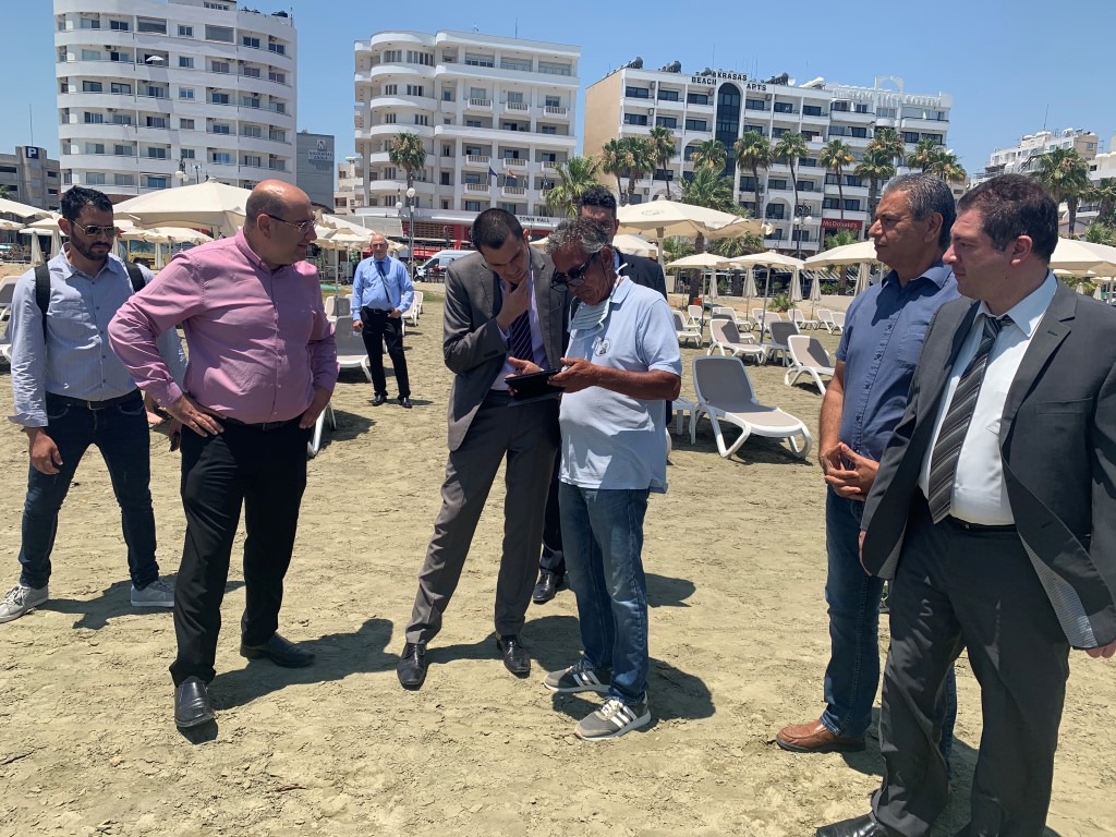 Στη συνέχεια έγινε επίσκεψη στις παραλίες Φοινικουδων και Μακένζυ όπου και επεξηγήθηκε στην πράξη το ηλεκτρονικό σύστημα ενοικίασης κρεβατιών άλλα και ο τρόπος απολύμανσής τους.