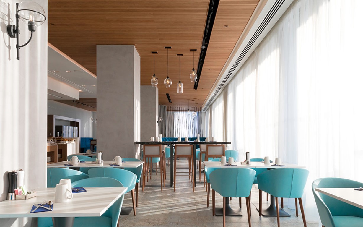 Διαθέτει ένα εστιατόριο, το all day restaurant Harbour Blu, το μπαρ Aqua Blu δίπλα στην πολυτελή πισίνα στον 5ο όροφο, το Blu Lounge Bar και το Skybar στον 16ο όροφο με φανταστική θέα της πόλης μέρα και νύχτα.  Είναι must να επισκεφτείτε ένα από τα βραβευμένα εστιατόρια του ξενοδοχείου στο ισόγειο ΜA Peruvian Japanese Restaurant, Marbre Fusion Grill και το κοσμοπολίτικο Dolce Café στο ισόγειο, την πισίνα στον 5ο όροφο και το Sky Bar με πιάτο όλη την πόλη στον 16ο όροφο.