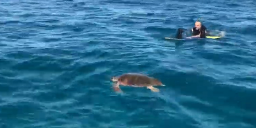Όπως διαπίστωσε, η χελώνα αδυνατούσε να καταδυθεί και γι΄ αυτό τον λόγο κάλεσε το Τμήμα Αλιείας για να επιληφθεί.